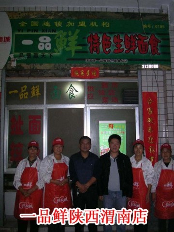 2000年,王威在面粉細分市場中又發現了一個商機:燴面坯,并自主研發生產了一套燴面坯生產設備,并在興華市場東南出口處的集貿市場租了一個門面,在縣城做起了專營燴面坯的生意來。王威的一品鮮燴面坯一綻放小城滎陽便受到了市民的歡迎,燴面坯除了在自己店里零售外,王威還把它送到當地的菜店、肉店、副食店、飯店、酒店、火鍋店、面條店、糧油店、農貿市場、商場、超市……“一品鮮燴面坯,好吃又方便”、“天天一品鮮,好吃又新鮮”、“不怕你不買,就怕你不嘗”這些順口溜很快傳遍了滎陽的大街小巷。
