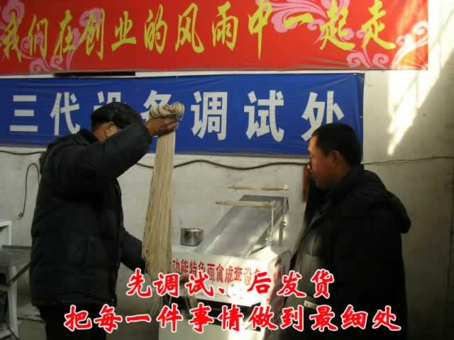 培訓幾天后,王總問他:“店面找好了嗎?如果急著開店,可以先回家選址,操作中遇到不會的問題,可以隨時給一品鮮總部打電話,技師們能夠做到24小時全程技術指導。如果店面找完了,我建議你再留幾天,因為滎陽一品鮮的加工設備,通過更換不同的刀具,可以生產燴面坯、拉面坯、抻面坯、拉條坯、刀削面、餃子皮、貝殼面、螺絲面、普通鮮面條等30多種產品。所出產品寬窄、薄厚、粗細、長短、圓扁可隨意調節(jié),成型機一次成型,定量切斷包裝。要想做到熟練操作,生產中少出錯誤,好還是能和技師們親身多學習學習?!?BR> 許志峰此時對一品鮮的認可程度,已經超過了面條的口感和企業(yè)的實力層面,王總為人的誠懇和總部售后的完善,更是讓許志峰覺得這次投資物超所值。